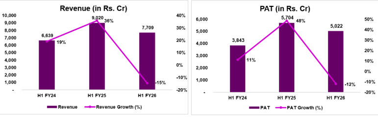 For H1 FY26, NSE reported revenue of ~₹7,709 crore (down ~15% YoY).